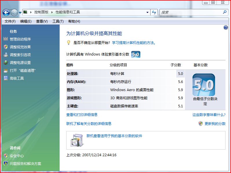 今天要做一个测试,装上了Vista,发现我的机器最差的竟然是CPU