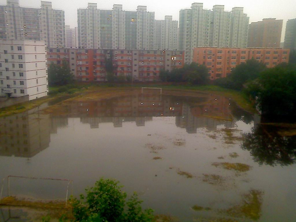昨天下午北京突然下起了大雨,那雨可真大啊,不一会操场上就一片汪洋了