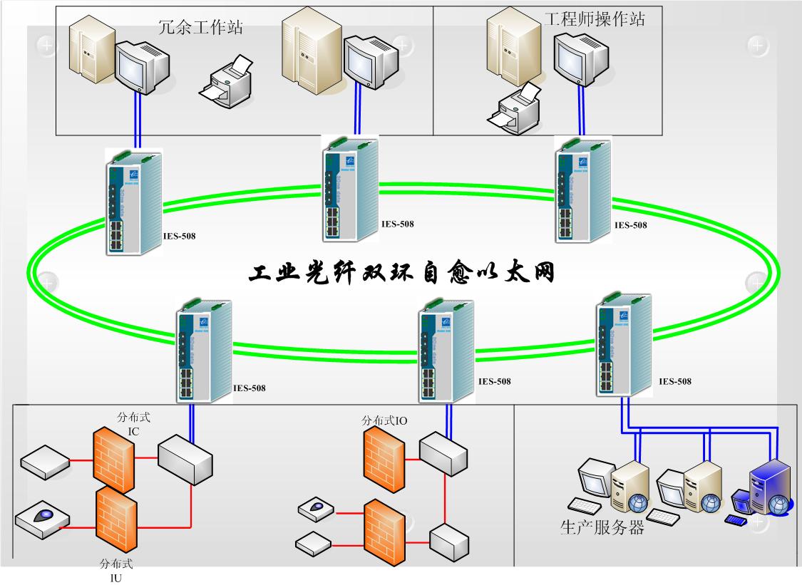 可支持100台设备同时组环,光纤接口分冗余和普通直连两种模式,冗余模式为一主多从结构
